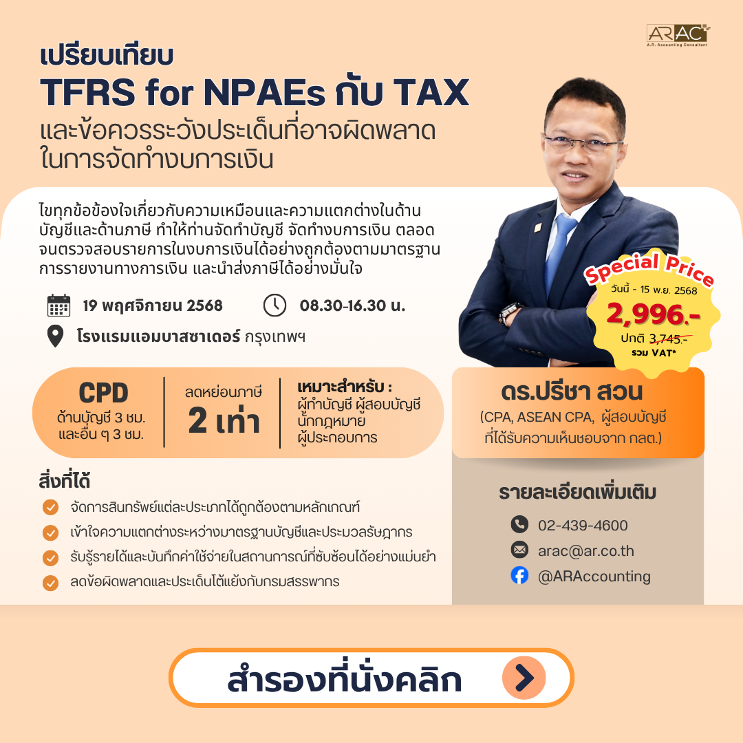 เว็บไซต์: www.ar.co.th/m/TFRS-for-NPAEs-VS-TAX-seminar