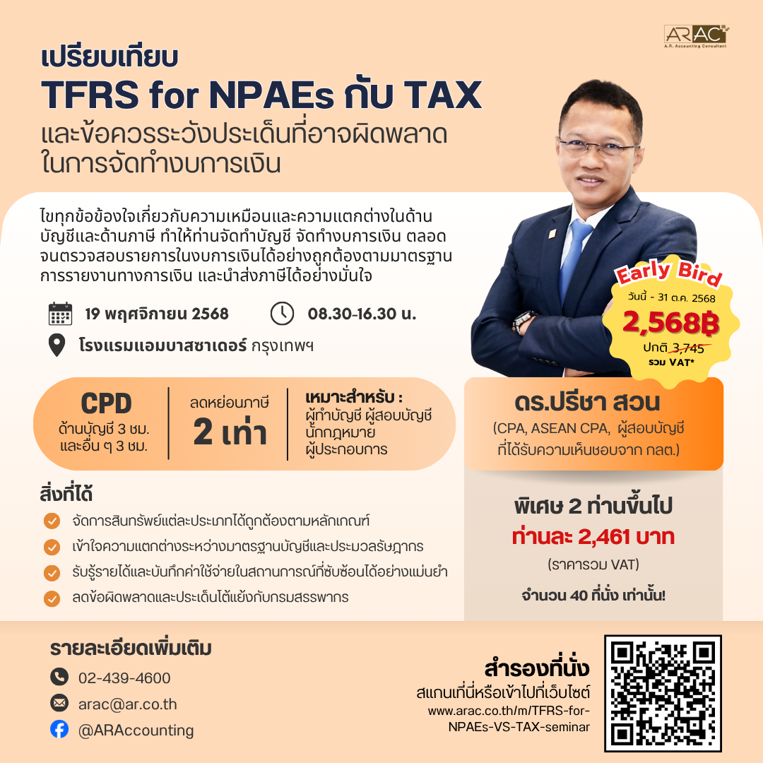 เว็บไซต์: www.ar.co.th/m/TFRS-for-NPAEs-VS-TAX-seminar